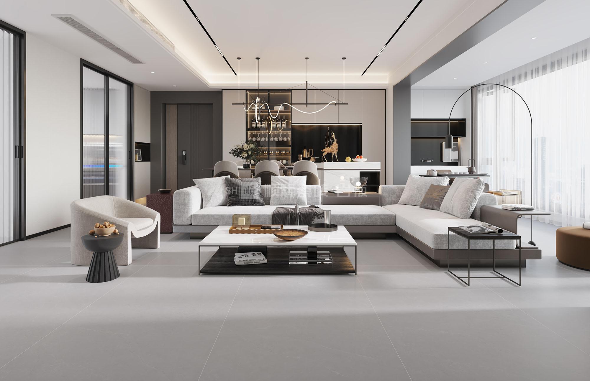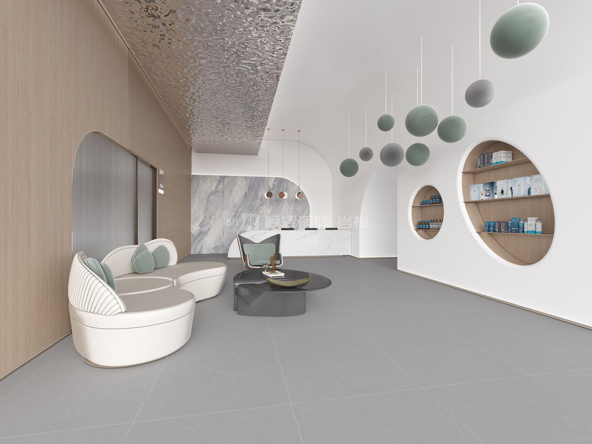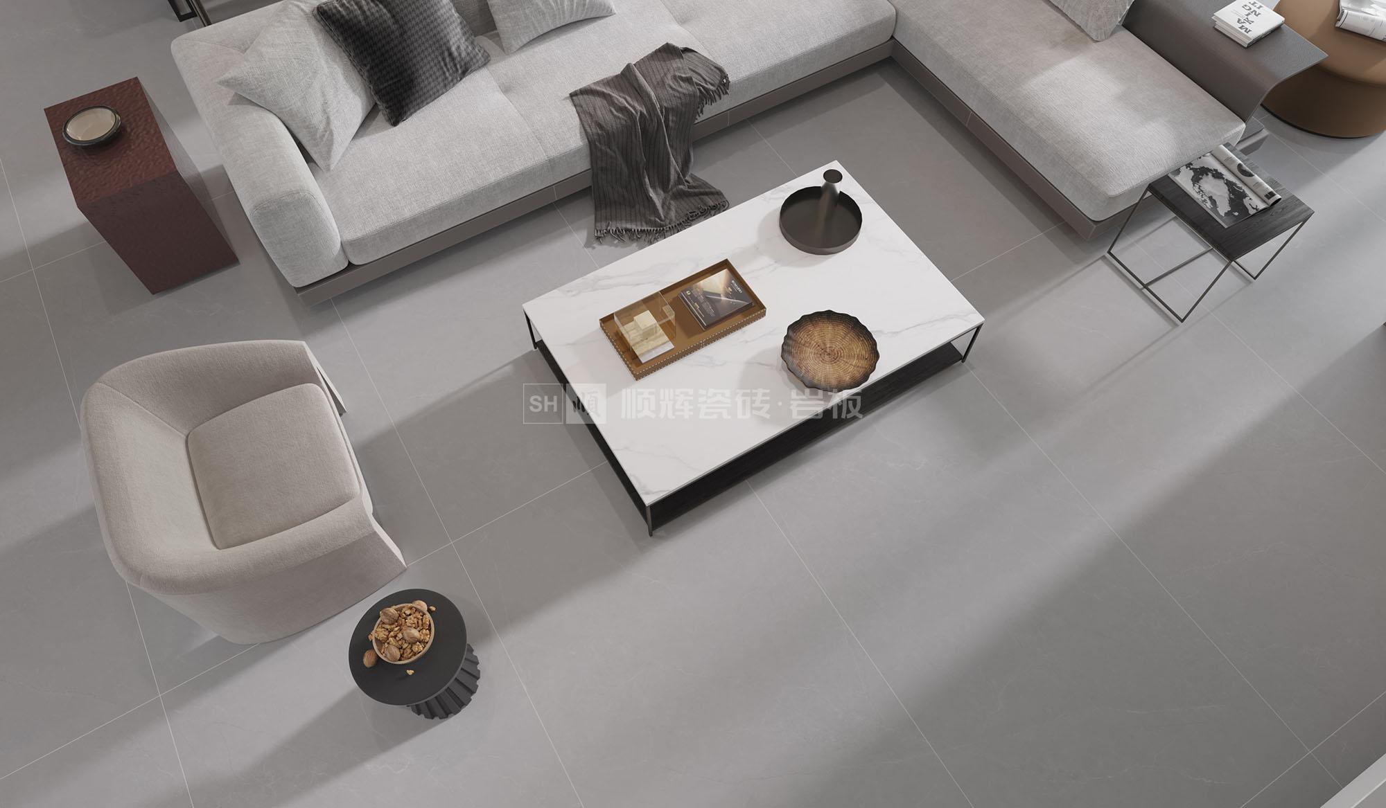 中灰调沉稳大气,朦朦胧胧中透出一丝炫目的微光,既有石材的厚实,又有时尚的温度。